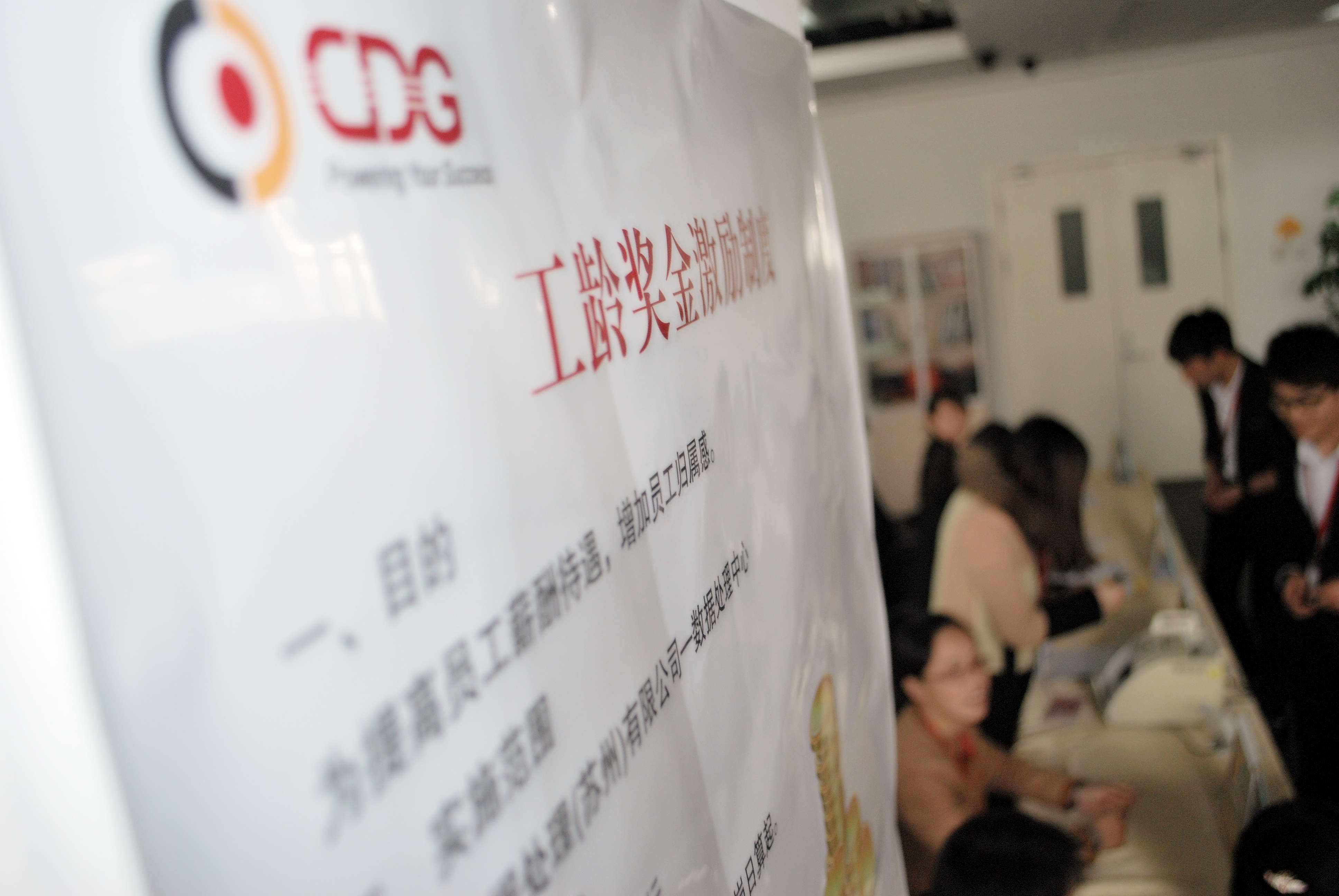 2013年,華道運營部門在“高效運營”的價值訴求下出臺新版《工齡獎金激勵制度》,并于2014年1月1日正式執行。這意味著在華道錄入中心工作的一線員工,2014年3月將獲得2013年內工齡對應的每月100元的獎金。2013年工齡獎獎金發放,公司一共準備了數十萬現金,運營員工在不影響業務處理的狀況下,依次領取了屬于自己的工齡獎現金。