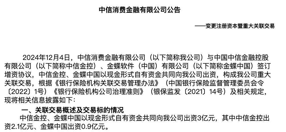 公告顯示,因經營發展需要,錦程消金擬采取資本公積轉增、 未分配利潤轉增及現有股東現金出資相結合的方式,將注冊資本增加 至 10 億元。成都銀行擬參與其現金增資,增資后仍為其第一大股東。錦程消金此次增資事宜尚需取得監管部門核準。同時,中信消費金融公司也發布公告稱,已經與其股東中國中信金融控股有限公司(以下簡稱“中信金控”)、金蝶軟件(中國)有限公司(以下簡稱“金蝶中國”)簽訂了增資協議。