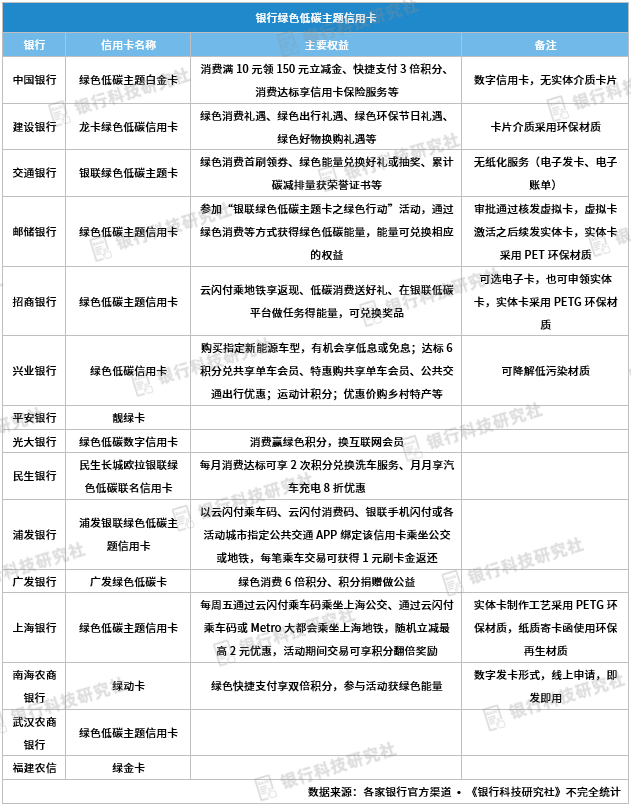 據了解,近期招行、興業銀行、光大銀行等上線綠色低碳主題信用卡。