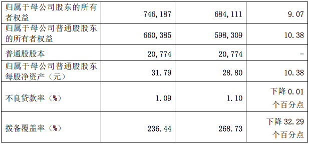 截至 2022年末,興業銀行資產總額 92,717.61 億元,較上年末增長7.77%,其中本外幣各項貸款余額 49,828.83 億元,較上年末增長 12.53%;負債總額 85,144.63 億元,較上年末增長 7.66%,其中本外幣各項存款余額 47,369.82 億元,較上年末增長 9.88%。資產質量保持穩定,不良貸款率 1.09%,較上年末下降 0.01 個百分點;撥備覆蓋率 236.44%,較上年末下降 32.29 個百分點。