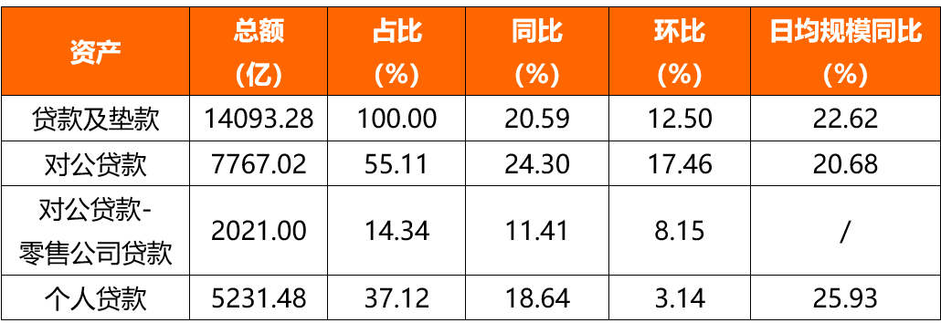 從負債結構看,存款增長主要由個人存款和對公存款共同拉動,兩者同比及環比增速均為15%以上。