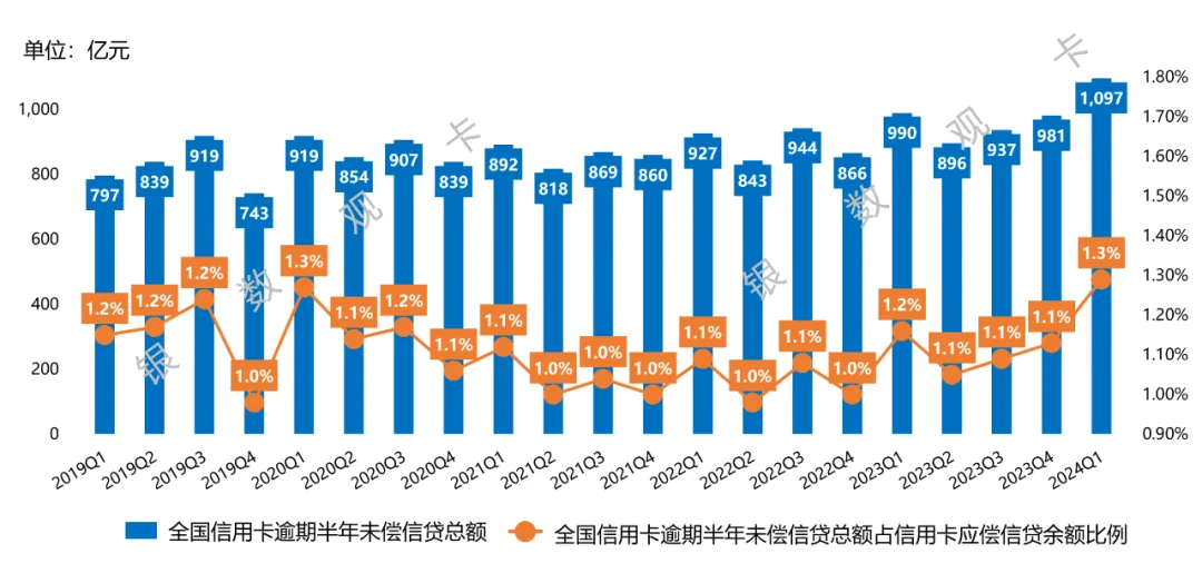 具體到信用卡業務,據中國人民銀行發布的支付體系報告,今年一季度末,我國信用卡逾期半年未償信貸總額1096.76億元,環比增長11.76%,占信用卡應償信貸余額的1.29%。從上市銀行披露的年報來看,受經濟結構調整、行業合規整改、產業周期等多重因素影響,部分銀行信用卡不良貸款略有攀升。