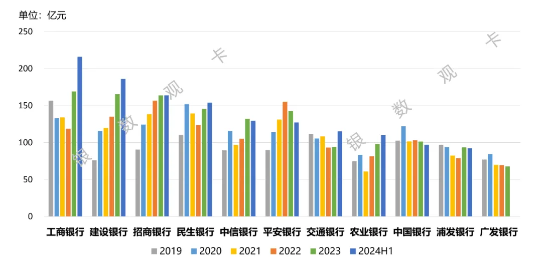 圖2:2019-2024上半年各銀行信用卡不良貸款金額