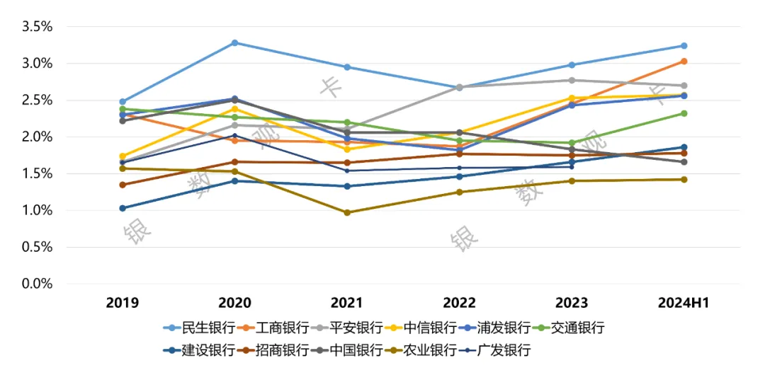 圖3:2019-2024上半年各銀行信用卡不良率