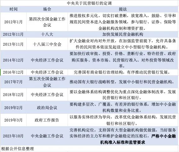 “雖然近年來(lái),社會(huì)上也有一些聲音反映國(guó)內(nèi)民營(yíng)銀行發(fā)展存在的問(wèn)題和不足。但實(shí)際上,我們?cè)诮陙?lái)的實(shí)踐當(dāng)中,走出了一條穩(wěn)健的民營(yíng)銀行發(fā)展道路,總體上還是成功的,試點(diǎn)成效還是明顯的。”尚福林在2021年發(fā)表的一篇文章中表示。在2015年6月的一場(chǎng)發(fā)布會(huì)上,尚福林披露,當(dāng)時(shí)申請(qǐng)?jiān)O(shè)立民營(yíng)銀行的數(shù)量已有40多家,但目前僅成立19家,換言之至少還有21家民營(yíng)銀行沒(méi)有獲批。從時(shí)間段看,2020年之后再無(wú)新的民營(yíng)銀行成立。這背后又發(fā)生了什么?據(jù)界面新聞?dòng)浾呤崂恚?012年-2019年的各種高層會(huì)議、官方文件中,支持民營(yíng)金融機(jī)構(gòu)發(fā)展是主基調(diào),比如2017年召開(kāi)的第五次全國(guó)金融工作會(huì)議提出“推動(dòng)國(guó)有大銀行戰(zhàn)略轉(zhuǎn)型,發(fā)展中小銀行和民營(yíng)金融機(jī)構(gòu)”。這一思路延續(xù)到2019年。2019年2月,中央政治局就完善金融服務(wù)、防范金融風(fēng)險(xiǎn)舉行第十三次集體學(xué)習(xí),學(xué)習(xí)的主題是金融供給側(cè)改革。會(huì)議明確提出,要增加中小金融機(jī)構(gòu)數(shù)量和業(yè)務(wù)比重。當(dāng)時(shí)一個(gè)樸素的觀點(diǎn)仍是中國(guó)金融主要還是為大企業(yè)服務(wù),而對(duì)于廣大的中小微企業(yè)、民營(yíng)經(jīng)濟(jì)等這些更需要資金及金融服務(wù)的主體服務(wù)嚴(yán)重不足。因?yàn)閲?guó)有銀行和大銀行只會(huì)服務(wù)大企業(yè)和國(guó)企,所以需要小銀行、民營(yíng)銀行。2018年9月,在央行、全國(guó)工商聯(lián)組織的“民營(yíng)企業(yè)和小微企業(yè)金融服務(wù)座談會(huì)”上,PPP概念股東方園林董事長(zhǎng)何巧女向時(shí)任央行行長(zhǎng)易綱直言:“現(xiàn)在民營(yíng)企業(yè)太難了,如果易綱行長(zhǎng)給我批一個(gè)銀行,我一定拯救那些企業(yè)于血泊之中,一個(gè)一個(gè)地救。”但次年?yáng)|方園林就暴雷了。當(dāng)時(shí)倒下的不止東方園林,多個(gè)民營(yíng)資本集團(tuán)也在2019年前后爆發(fā)風(fēng)險(xiǎn),但它們控股了銀行、證券、保險(xiǎn)、信托等多類(lèi)金融機(jī)構(gòu),導(dǎo)致風(fēng)險(xiǎn)外溢,一些金融機(jī)構(gòu)還被股東“掏空”。以包商銀行為例,《央行金融穩(wěn)定報(bào)告(2021年)》披露,從1998年開(kāi)始,明天系陸續(xù)通過(guò)增資擴(kuò)股和受讓股權(quán)等方式不斷提高其在包商銀行的股權(quán)占比,截至2019年5月末持股近九成。在控股包商銀行期間,明天系通過(guò)虛構(gòu)業(yè)務(wù),以應(yīng)收款項(xiàng)投資、對(duì)公貸款、理財(cái)產(chǎn)品等多種交易形式,共占用包商銀行資金逾1500億元,占包商銀行資產(chǎn)總規(guī)模近30%。“金融機(jī)構(gòu)是資金密集型企業(yè),入股或控制金融機(jī)構(gòu)往往可以獲得融資便利。在國(guó)內(nèi)外金融發(fā)展歷程中,部分股東或?qū)嶋H控制人違規(guī)入股或控制金融機(jī)構(gòu),套取資金,最終造成金融風(fēng)險(xiǎn)累積的情況時(shí)有發(fā)生。”央行在報(bào)告中指出,“問(wèn)題股東違規(guī)控制金融機(jī)構(gòu)的目的就是將其變?yōu)椴皇芟拗频摹峥顧C(jī)’”。實(shí)際上,相關(guān)問(wèn)題的討論在上世紀(jì)90年代就已出現(xiàn)。當(dāng)時(shí)支持設(shè)立民營(yíng)銀行的學(xué)者很多,反對(duì)的也不少,理由之一就是民營(yíng)企業(yè)可能從控股的銀行違規(guī)獲取貸款。而2019年以來(lái),個(gè)別民營(yíng)資本“掏空”金融機(jī)構(gòu)的做法可能讓決策層對(duì)新設(shè)民營(yíng)金融機(jī)構(gòu)更加謹(jǐn)慎。另一理由是,國(guó)有商業(yè)銀行分支機(jī)構(gòu)延伸到縣城和鄉(xiāng)鎮(zhèn),只要適當(dāng)改革,它們同樣可以服務(wù)好小微。這一爭(zhēng)論在2019年以后也有了定論。2019年政府工作報(bào)告首度提出“國(guó)有大型商業(yè)銀行小微企業(yè)貸款增長(zhǎng)30%以上”,當(dāng)年國(guó)有大行超額完成了目標(biāo),此后幾年也保持著30%左右的增速。據(jù)界面新聞?dòng)浾呓y(tǒng)計(jì),2023年末六大行普惠小微貸款余額合計(jì)11.5萬(wàn)億元。其中,工行、農(nóng)行、建行余額在2.2萬(wàn)億元以上,已超過(guò)民營(yíng)銀行整個(gè)行業(yè)的資產(chǎn)規(guī)模,且貸款利率更低、不良率也保持在較低水平。在此背景下,高層對(duì)大行、中小銀行的定調(diào)出現(xiàn)顯著變化。去年召開(kāi)的中央金融工作會(huì)議提出,支持國(guó)有大型金融機(jī)構(gòu)做優(yōu)做強(qiáng),當(dāng)好服務(wù)實(shí)體經(jīng)濟(jì)的主力軍和維護(hù)金融穩(wěn)定的壓艙石,嚴(yán)格中小金融機(jī)構(gòu)準(zhǔn)入標(biāo)準(zhǔn)和監(jiān)管要求。