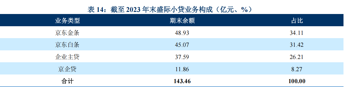 盛際小貸作為京東科技旗下持牌小貸公司,系京東科技旗下京東金融業務板塊的重要主體之一。目前盛際小貸的主要業務品種為白條、金條、企業主貸和京企貸。